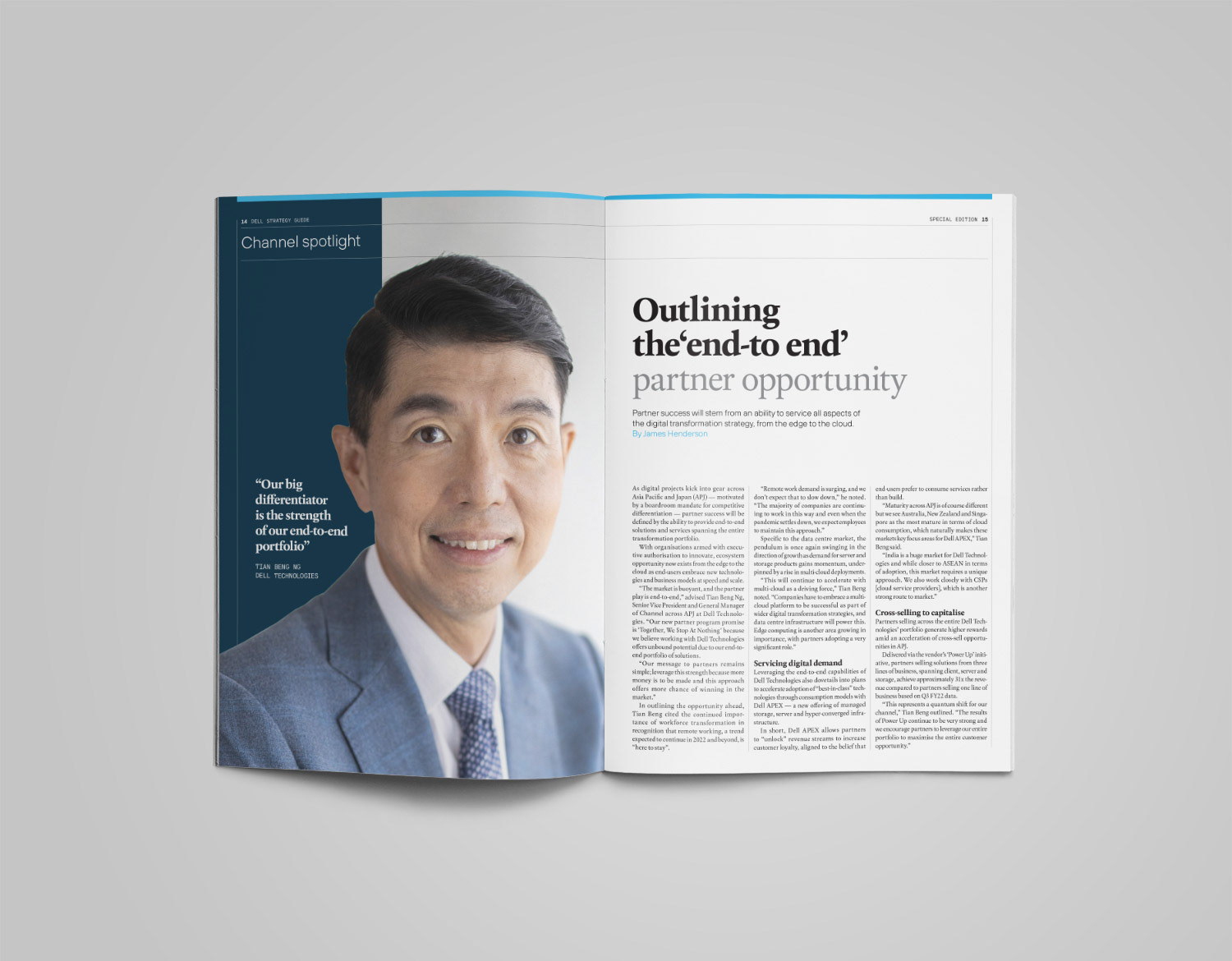 This was a job I did for IDG, a tech-focussed media company. Liaising with a few different agencies I produced a 20 page guide for Dell which focussed on reselling 'in the channel'. Along with the 20 page guide there were two miniature 8pp versions which were translated for the Korean and Chinese market. Layouts were produced in Indesign. Photography was sourced from client and online stock libraries.
